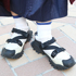 A ワンピースがガーリーな感じだったので、スニーカーで崩したくて。ごついスニーカーの方が存在感があると思ってこれを履きました。普段はタイツをはいているんですけど、今日は暖かいからいいかなと思って靴下だけです。