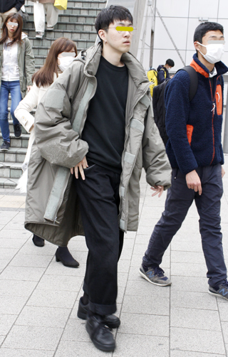 ショート丈ダウンからフーディーヘと変化しながらスポーティーでカジュアルなムードが継続