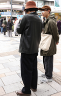 古着と思われるレザーコートも多かった。こちらはハンチングと合...