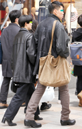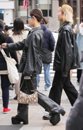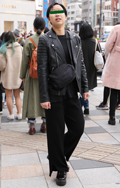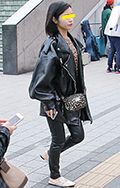 スタッズ付きのライダースも散見されたが、レザーパンツにバッグ...