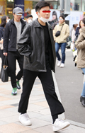 ライダースJK以外にもレザージャケットも散見された。ショート...