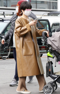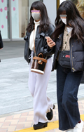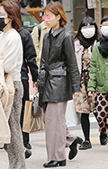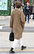 スエードやモールスキン風の素材のアウターも人気だった。白パン...