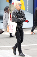 レザーのスキニーパンツ+Gジャンの組み合せがロック感たっぷり...