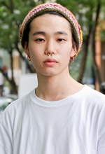 カラーパンツは、パステルカラーやニュアンスカラーが欲しくて去年くらいから気になっていました。ラベンダーとか。あとは動きやすさ。同じテンションのカラーで合わせます。紫と黄色、紫とパステルグリーン、渋い系は去年ぐらいから。白Tは同じのを毎年買っています。大学生の頃から着ているから5年くらい。これは綿100%で肌触りがよくて、首元の締まりもきつくなくてコットンの感じが良いです。ポリエステルなどの化繊より、ナチュラルな印象になるので好きです。Tシャツは絶対綿100%。白Tシャツは特に。ちょっとルーズに着たいのでLサイズです。大き過ぎずゆとりのある感じ。3枚くらい持っています。ボディはUnited Athle(ユナイテッドアスレ)と他にはGILDAN(ギルダン)とか。オンスが違います。GILDANの方が薄くよりルーズな印象。ロンTも着ます。インナーとかレイヤードにも白Tを使います。