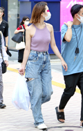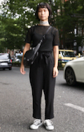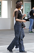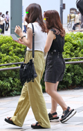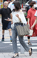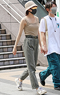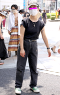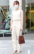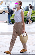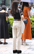トップスをボトムスの中に全部入れて着用している女性すべて。ボトムスはパンツでもスカートでもキュロットでも構わない。色や素材も問わない。