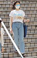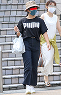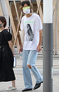 UもしくはVネックで襟がなく、袖が肘より短いコットン100%やポリエステル等との混紡のカジュアルなトップスをいちばん上に着用している男性、女性すべて。色は問わないがボーダー等の総柄は除く。