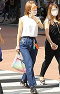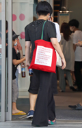 ネオンカラーのエコバッグを差し色にしたコーディネートも散見さ...