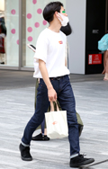 LEVISのロゴTシャツを着ていた彼はランチバッグのようなB...