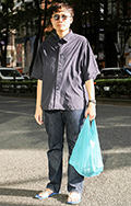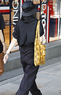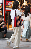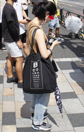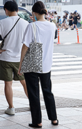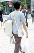 デザイン性の高いショッパーをバッグとして使う人も多い。こちら...