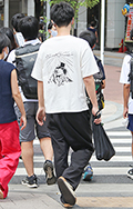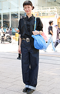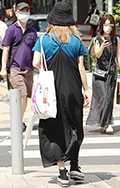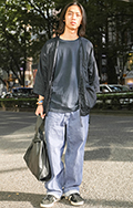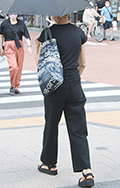 オールブラックコーディネートの男性も非常に多かった。レジ袋風...