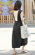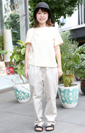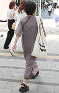 生成りのマチなしエコバッグをパンツと同系色のチャームでアレン...