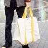 白の布地にロゴだけ入ったシンプルなエコバッグが多く見られた。...