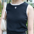 このトップスは、ブランドが好きなのとデザインがかわいくて買いました。袖なしのものはずっと昔から変わらず着ていますが、下はあんまり肌を出さない着こなしを意識しています。