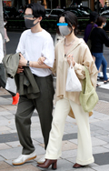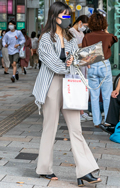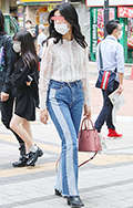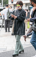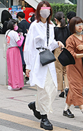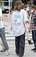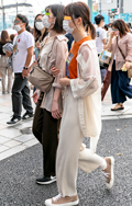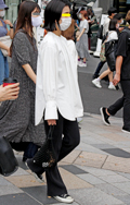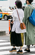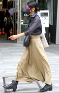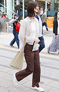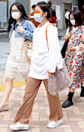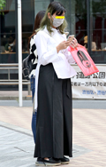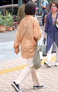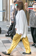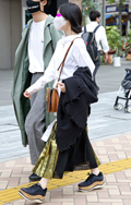 裾をボトムスにインせず、出している女性すべて。