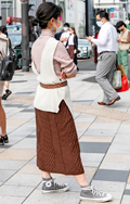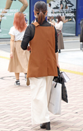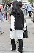 前開きのニットベストも散見された。プリーツやスリット入りのニ...