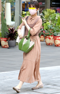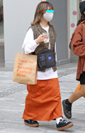 今秋冬のトレンドカラーであるオレンジっぽい茶のマキシスカート...