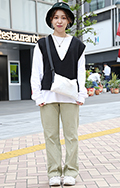 白ベースにカラフルなニットベストを主役にしたコーディネート。...