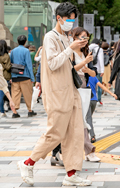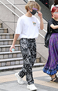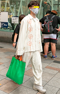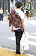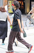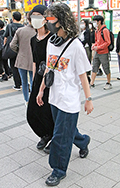 ツイストパーマをかけた無造作なヘアの男性は、原宿らしいドメス...