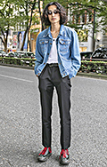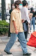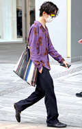 上質なシャツにパンツ、グッチのスリップオンが街中で目立ってい...