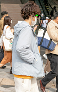 スポーティなブルゾンにクルクルパーマヘアが印象的だった彼女。...