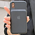 iPhone XS。このスマホケースは、めんどくさがりなのでできればバッテリーを持ち歩かなくてもいいようにしたいなと思って調べたらこれがあった、という感じ。白だと汚れるので黒を選びました。
