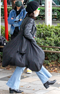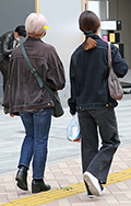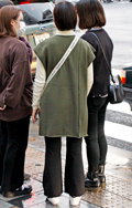 ティーンズと思われる二人組はナイロン素材のワイド~フレアパン...