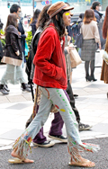 新宿地点で多く見られたのは、バギーパンツのようなワタリの広い...