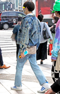 古着風のウォッシュデニムをセットアップ風に着こなした若者。こ...