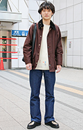 アウターとして着た古着っぽいライナーに色落ちしたデニムがこな...