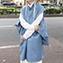 ヴィーガンレザーです。本革かどうかはあまり気にしていません。これを買う前はフェイクレザーだと安っぽく見えちゃうとか気にしていて、本革が絶対いいと思っていました。だけど今動物を大事にとか色々あるので取り入れてみようと思って。色も形も好きで肘を開けたりベストにして着たりもできます。秋はベストとして着ていましたが、今日は寒かったので袖をつけて着ました。大人っぽくなるからレザーアイテムが好きです。