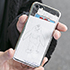 iPhone8。ケースは中のものを見せたいのでクリアが多いです。友だちが描いたイラストやシールを入れています。
