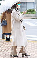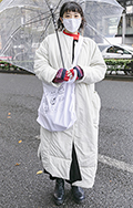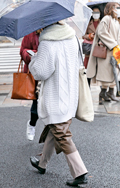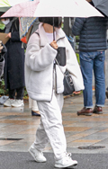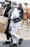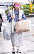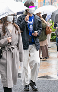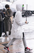雨の日でも思い切って白!という人が男女問わず多かった原宿地点...