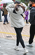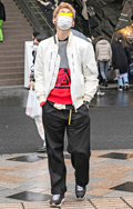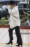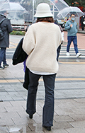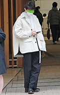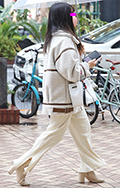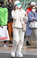 この日の新宿では白ブーツを使ったオールホワイトコーディネート...