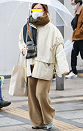 白/オフホワイトは昨今ボリューム化した茶ベージュ系のコーディ...