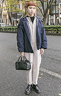 素材の切り替えが楽しいモコモコアウターの女性。grounds...