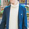 ケーブル編みニットとボリュームのあるマフラーで冬っぽい装い。...