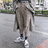 KHOKI(コッキ)のコート。16万円です。デニムとカーキが半々に切りかわっています。あとは今日のスニーカーの色違いで、オール白のやつを買いました。