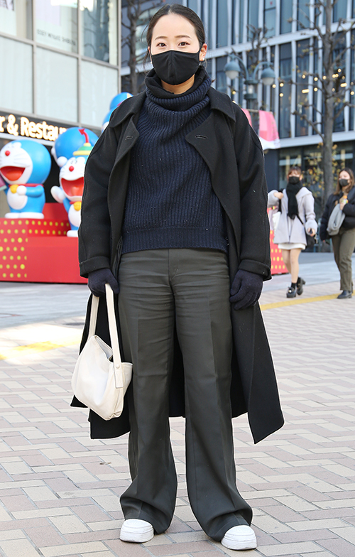 裾が広がっているデザインのパンツを着⽤する⼥性すべて。⾊や柄、素材は問わない。