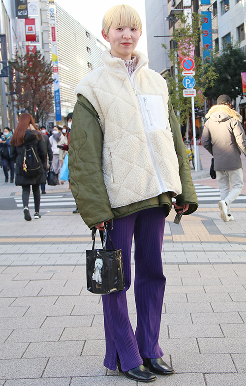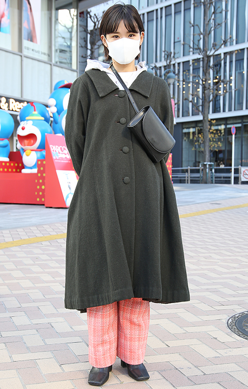 歩くときにひざ下部分が⾜元でひらひら〜バサバサと揺れているパンツを着⽤している⼥性すべて。⾊や柄、素材などは問わない。