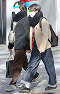 しっかり巻き付けたマフラーにニットキャップ、マスクを加えて顔...