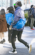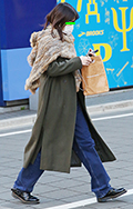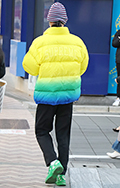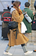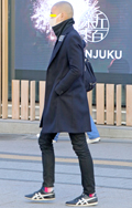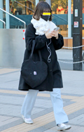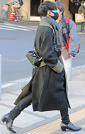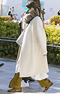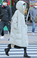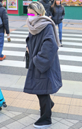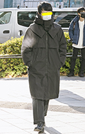 まるで寝袋のような身体を覆うボリュームたっぷりのコート。左奥...