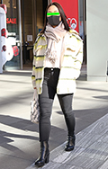 この日いちばん目を引いた毛皮を編み込んだ大判ストールの女性。...