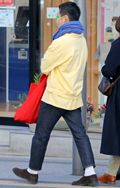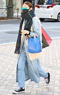 ブルーのマフラーが差し色に。春が待ちきれないといった爽やかな...