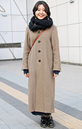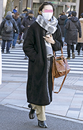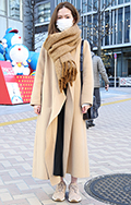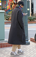 ダブルフェイスのロングコートとマフラーでレイヤード感を演出。...