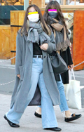 色違いのボアジャンパーに黒いスヌードのシミラールックのカップ...