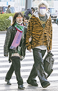レザー×派手柄のやんちゃなコーディネートがお似合いのカップル...