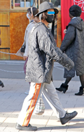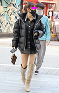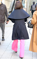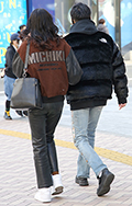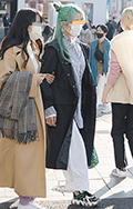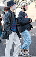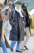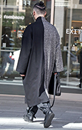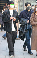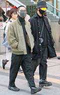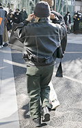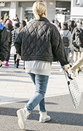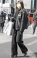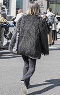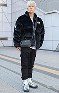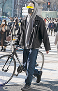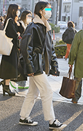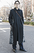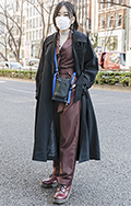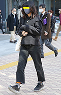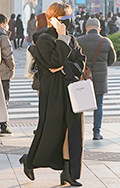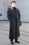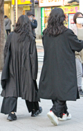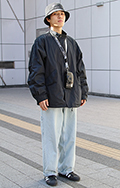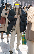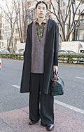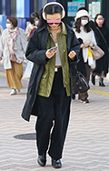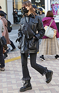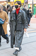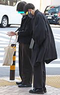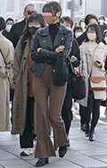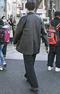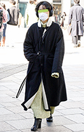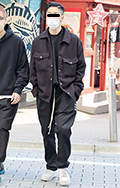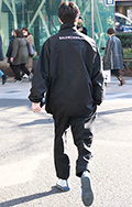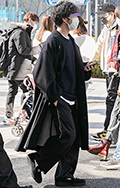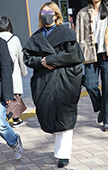 いちばん上に着⽤された外套が⿊い男性・⼥性すべて。全体のデザインに⽀障のない程度のロゴやアクセントが他の⾊であしらわれているものは含む。Tシャツや薄⼿のフーディなどは除く。