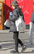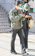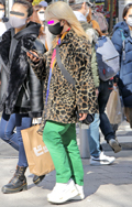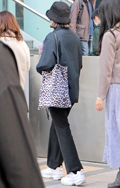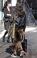 レオパード柄のエコバッグも散見された。ワイドパンツやスニーカ...