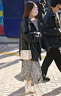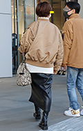 パイソン柄の巾着バッグも人気だった。MA-1やレザースカート...