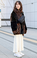 モコモコアウターの上からレオパードのファーベストを更にレイヤ...